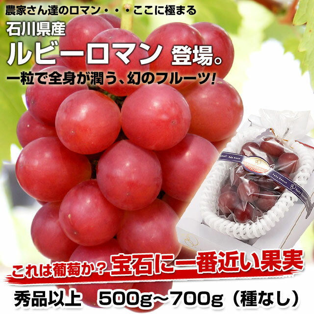 ギフト対応秀品以上 ルビーロマン 500g〜700g本商品は、東京大田市場からの発送となります。名称:ルビーロマン原産地:石川県内容量:500g〜700gこちらの商品は発送日より以下の到着を予定しております。北海道北東北南東北関東信越北陸翌々日翌日翌日翌日翌日※翌日東海・・・