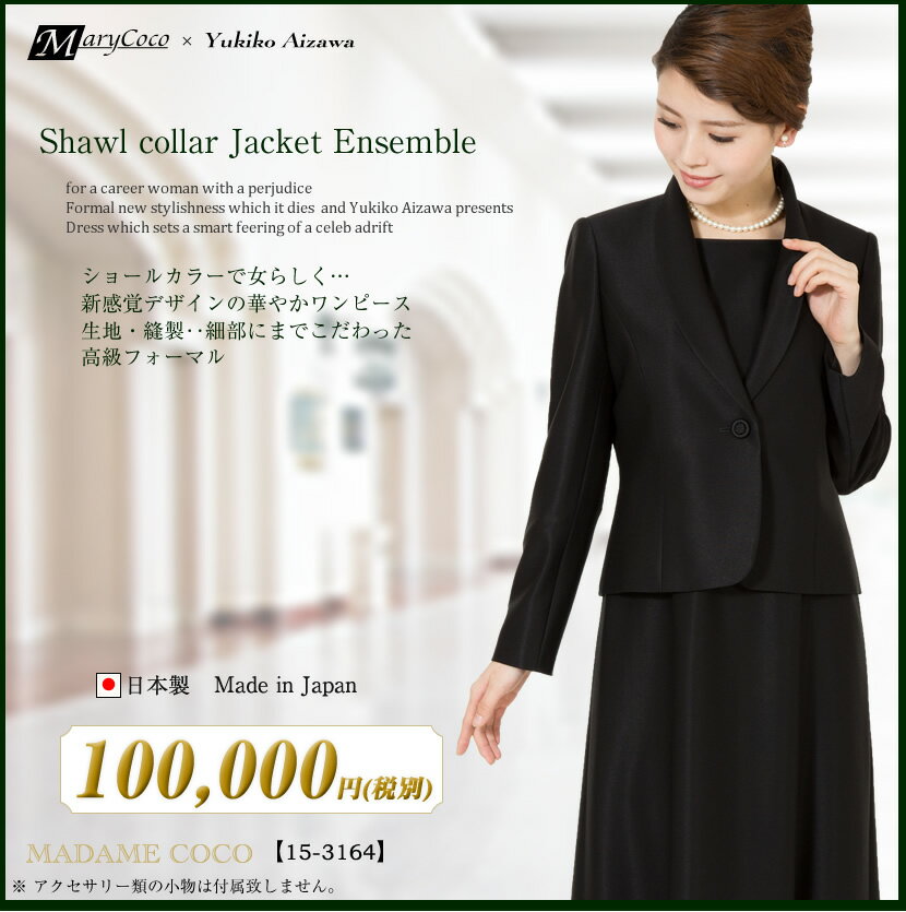 【日本製】ブラックフォーマル ショールカラージャケットアンサンブル[喪服,礼服,黒,レディース,セレモニー,ミセス,40代][7号 9号 11号 13号 15号]15-3164【国産】【夏ワンピース】【送料無料】