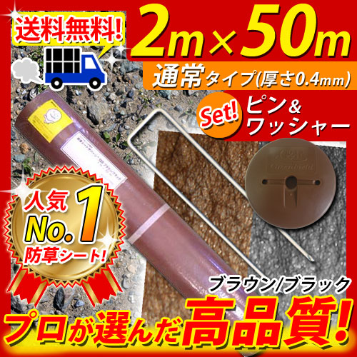 防草シート ザバーン防草シート 通常タイプ 128ブラウン/ブラック サイズ:2mx50m ピン・ワッシャー各100個入り 雑草対策 防草対策 除草 草取り デュポン社 グリーンフィールド 【送料無料】