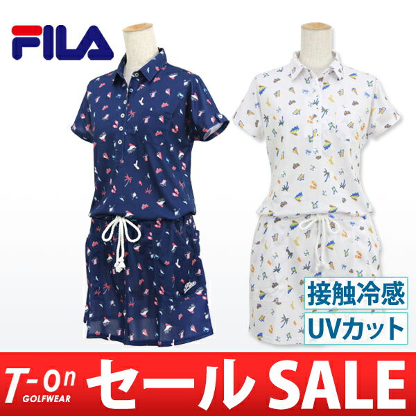 ★Regina春夏号掲載★フィラ/フィラ ゴルフ/ワンピース 半袖ワンピース ポロワンピース UVカット 接触冷感 マリンモチーフ 総柄/FILA GOLF【レディース】フィラ ゴルフ【2015年春夏新作】ゴルフウェア