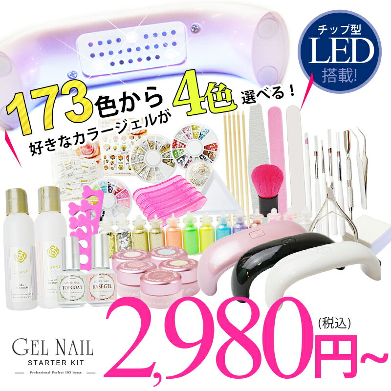 ジェルネイル スターター キット [2,980円〜] ジェルネイル 最新173色 カラージェルから4個選べる ジェルネイル 初心者も簡単!ジェルネイル アート 説明書付き ジェルネイル ランキング1位入賞! ジェルネイル セット ネイル用品 お試し